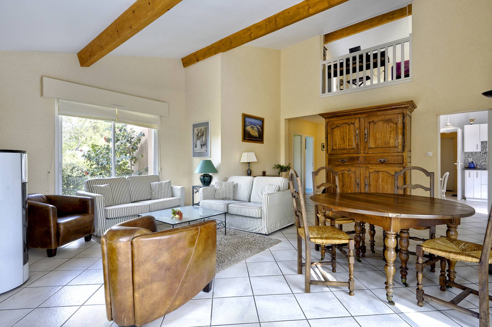 Au rez-de-chaussée, une entrée dessert une première chambre orientée à l’Est, équipée d’un lit double et d’un grand placard, avec un accès direct à une terrasse ombragée. La cuisine, séparée et entièrement équipée, s’ouvre sur une terrasse plein Sud, parfaite pour les repas en plein air. Un spacieux séjour, lumineux et traversant, bénéficie d’une triple exposition et donne accès aux terrasses Sud et Ouest. Une seconde chambre, côté Nord, ainsi qu’une salle de bain et des toilettes séparées complètent ce niveau. Un cellier avec lave-linge et sèche-linge assure un confort optimal. À l’étage, la mezzanine surplombant le séjour offre un espace détente avec canapé-lit et télévision. On y trouve également une salle d’eau avec WC, ainsi qu’une troisième chambre lumineuse, exposée Sud et Est, dotée de deux lits simples et d’un grand placard. À l’extérieur, trois terrasses bien exposées permettent de profiter du soleil à toute heure de la journée, tandis que le jardin paysager, orné notamment d’un bel eucalyptus, invite au repos. Le garage est réservé au rangement et le stationnement peut se faire aisément devant la villa ou dans la rue. Parfaitement équipée, facile à vivre et très lumineuse, cette maison bénéficie d’un emplacement privilégié : la plage du Pyla est accessible à pied en quelques minutes, une petite épicerie se trouve à proximité, le quartier du Moulleau à dix minutes en voiture, et la célèbre dune du Pilat à seulement cinq minutes. Les animaux sont acceptés sous réserve d’un accord préalable. Le linge de maison n’est pas fourni mais peut être loué via notre partenaire LocLinge (code promo : vacances33). Une assurance annulation est proposée en option et le ménage de fin de séjour est inclus, à condition que le logement soit entretenu normalement pendant la durée de la location.