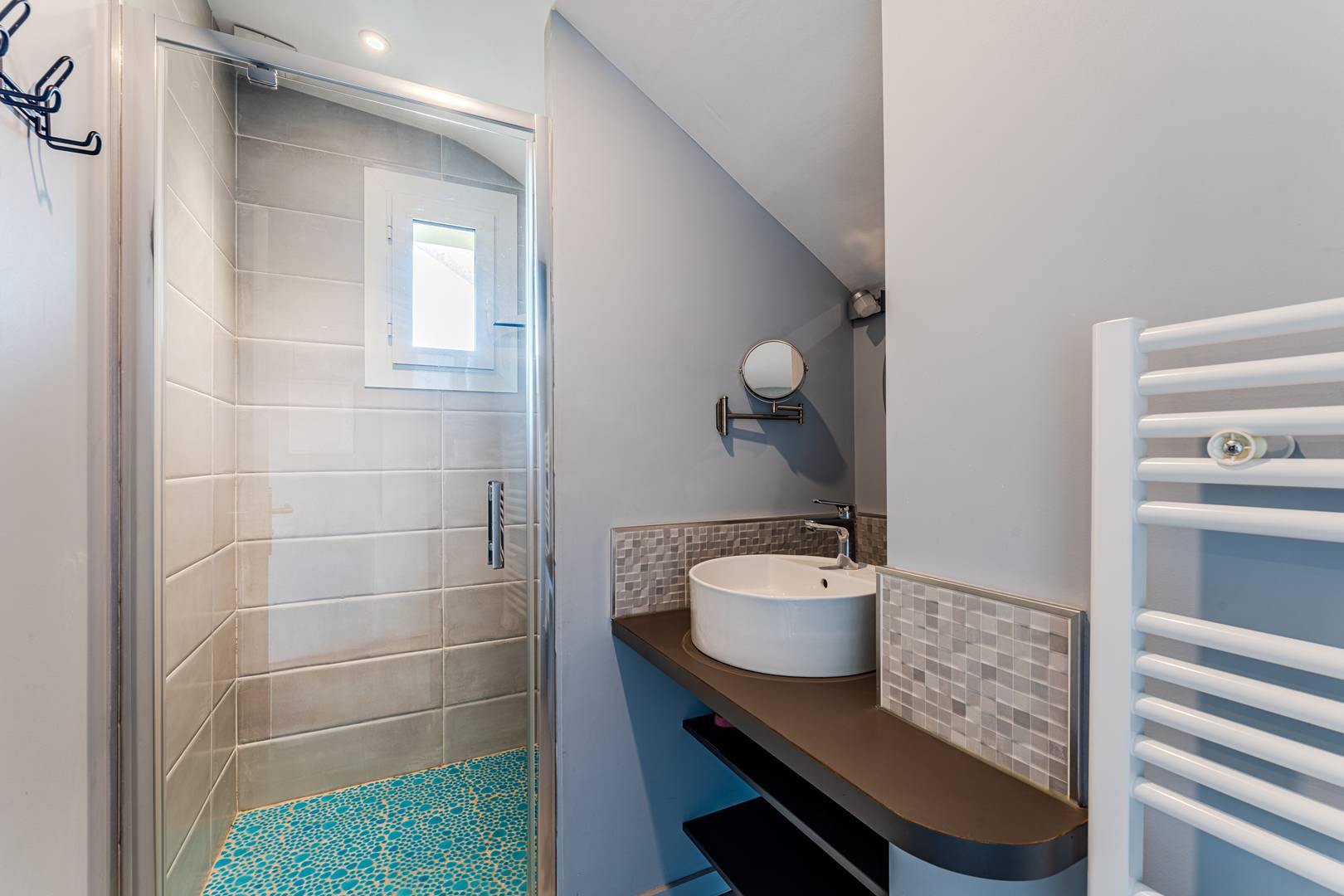L’entrée dispose d’un placard et s’ouvre sur une lumineuse pièce de vie exposée plein Sud, composée d’un espace salon avec canapé convertible en 140 et télévision, d’un coin repas avec banquette, ainsi que d’une cuisine entièrement équipée (grand réfrigérateur avec freezer, lave-vaisselle, lave-linge, plaque vitrocéramique trois feux, hotte, four micro-ondes…). Un couloir avec rangements dessert une salle d’eau, des WC séparés et une chambre exposée Ouest, dotée d’un lit en 140 et de nombreux placards.