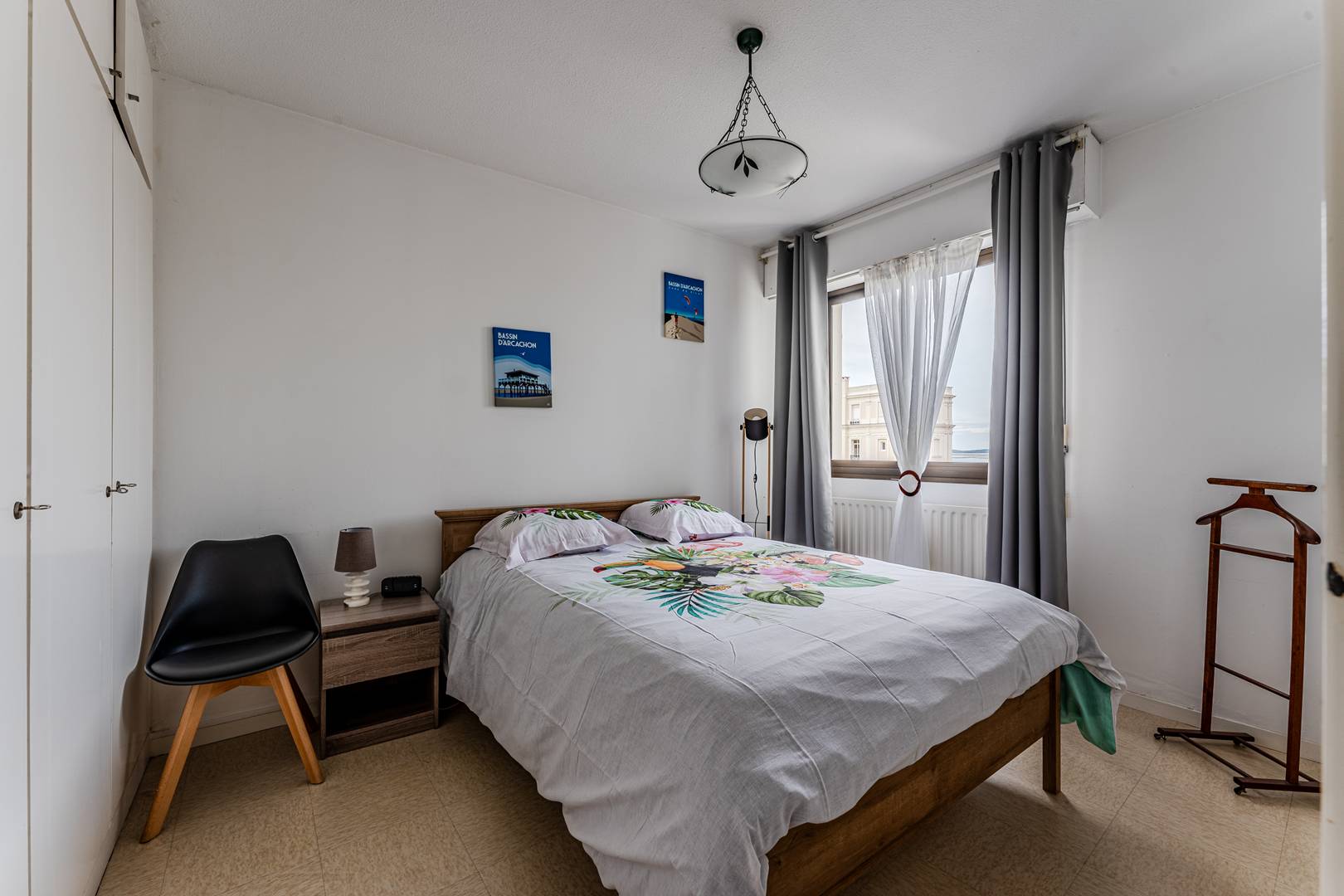 L’accès se fait par une patio-coursive extérieure privative, offrant déjà une très belle vue sur le Bassin d’Arcachon. Un sas d’entrée avec placard dessert des WC séparés, un cellier, puis une vaste cuisine indépendante, entièrement équipée (réfrigérateur, congélateur, four traditionnel, micro-ondes, hotte, plaques gaz, lave-vaisselle, lave-linge, machine à café Senseo…). La pièce de vie, exposée plein Sud, se compose d’un coin salon TV avec canapé et d’un espace salle à manger intégrant un couchage d’appoint type BZ en 140 cm. Cet espace ouvre directement sur un premier balcon exposé Sud, idéal pour profiter du soleil. Un dégagement mène à une salle de bain complète, équipée à la fois d’une baignoire et d’une douche, ainsi que d’un bidet. La première chambre, également exposée Sud, dispose de deux lits de 90 cm rapprochés et motorisés, d’un grand placard-penderie et d’un accès direct au second balcon. La seconde chambre, orientée Nord, bénéficie d’une superbe vue sur le Bassin d’Arcachon et est aménagée avec un lit en 140 cm et un placard-penderie. Les deux balcons, d’une surface d’environ 4,5 m² chacun, sont équipés de mobilier extérieur et de stores bannes, offrant une agréable protection contre le soleil et une belle vue sur la Ville d'été. L’appartement est très bien équipé, spacieux et confortable, avec connexion Internet / Wi-Fi, et bénéficie d’un emplacement exceptionnel : le marché municipal se situe à environ 150 mètres, la plage à 20 mètres, et la célèbre jetée Thiers à seulement 170 mètres. Une place de parking nominative, sécurisée et non couverte, est incluse. Les animaux ne sont pas admis. Le linge de maison n’est pas fourni, mais peut être loué auprès de notre partenaire LocLinge (code promotionnel : vacances33). Une assurance annulation est incluse (adhésion facultative). Le ménage de fin de séjour est compris, sous réserve d’un entretien normal et régulier du logement durant la location.