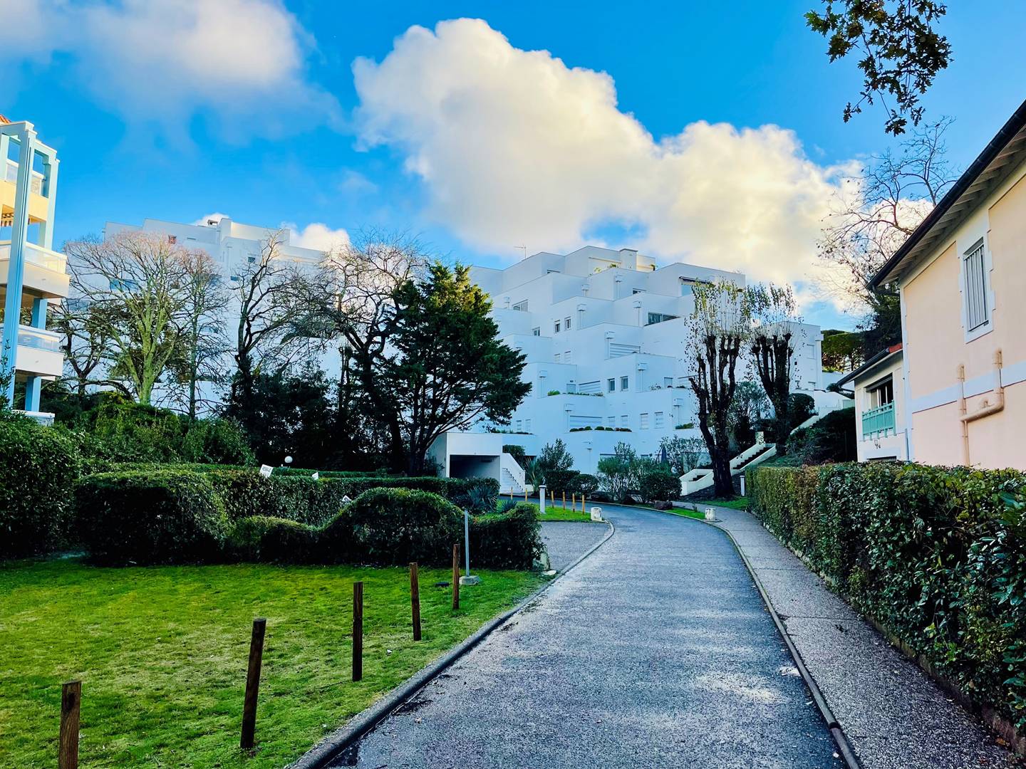 A proximité du château Deganne (Casino – Machines à jeux), à l’avant dernier étage avec ascenseur d’une résidence sécurisée et très bien entretenue : Appartement T2 (1 chambre) traversant (Nord / Sud) d’environ 45 m² avec parking et terrasse.