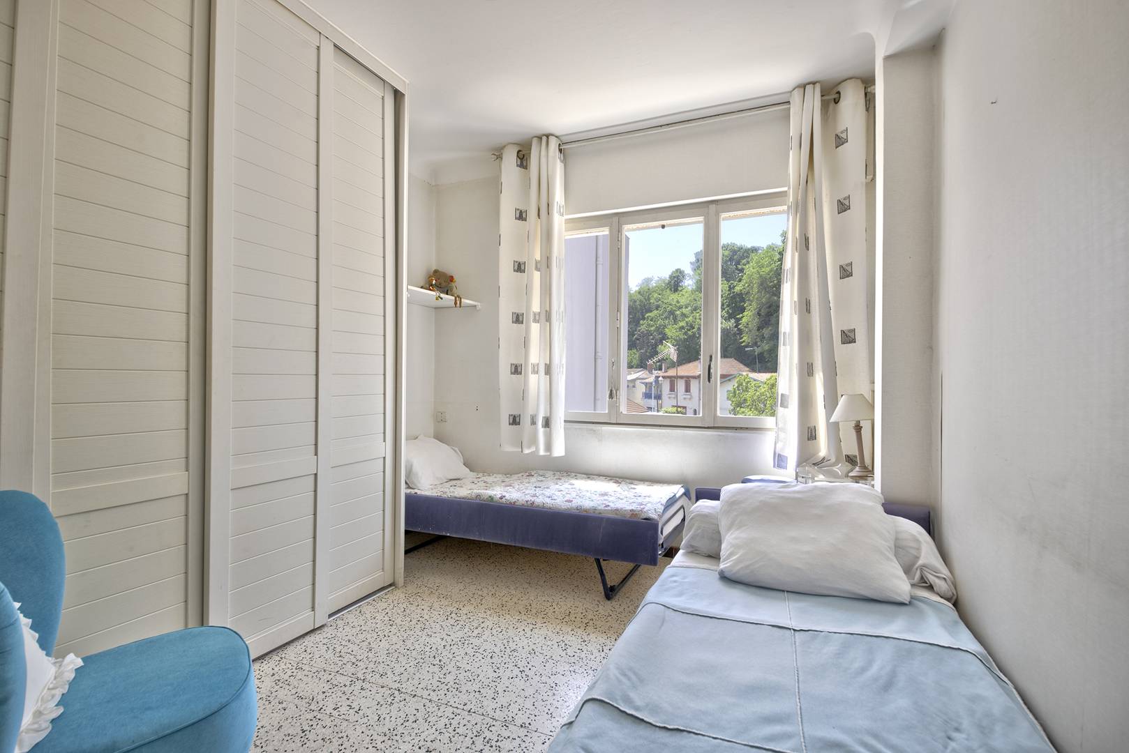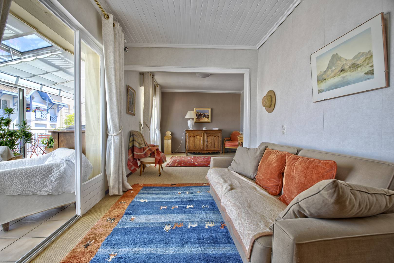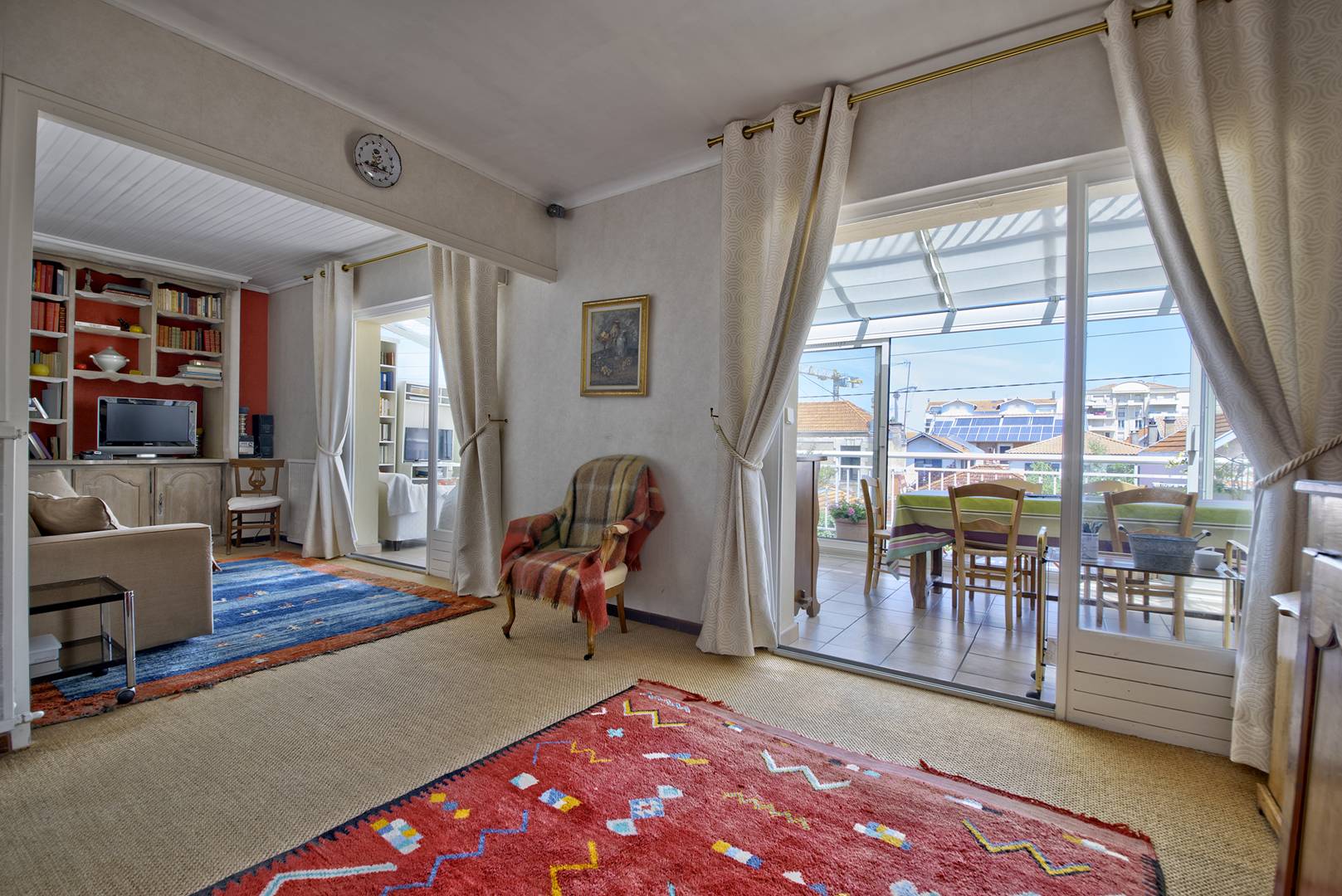 À l'entrée, un couloir dessert une cuisine équipée comprenant un réfrigérateur avec partie congélateur, 4 plaques à induction, un four à micro-ondes, un four électrique, une hotte et un lave-vaisselle. Vous découvrirez ensuite une première chambre exposée au sud, équipée de 2 lits en 90 et d'un placard/penderie, des toilettes séparées, ainsi qu'une salle d'eau avec lave-linge et sèche-linge. La deuxième chambre, également exposée au sud, est dotée d'un lit en 160 et d'un placard/penderie. Un premier salon revêtu de jonc de mer se compose d'une pièce avec un canapé-lit (pour 2 personnes) d'environ 14 m², ainsi que d'une deuxième pièce avec une bibliothèque. La véranda abrite un deuxième salon avec télévision et une salle à manger donnant sur un balcon offrant une vue panoramique sur la ville. Bien que la résidence ne soit pas équipée d'ascenseur, un monte-escalier "Stannah" est disponible. De plus, un garage privé est à votre disposition. La situation est idéale : à quelques minutes de la plage et des commerces, tout en offrant une atmosphère paisible. L'appartement est très bien équipé, avec accès à Internet/WIFI. Les animaux ne sont pas admis. Le linge de maison n'est pas fourni, mais vous avez la possibilité de le louer via notre partenaire LocLinge (code promo : vacances33). Une assurance annulation est incluse (adhésion facultative). Le ménage en fin de séjour est possible (de 50 € à 300 € selon la location), moyennant un supplément.