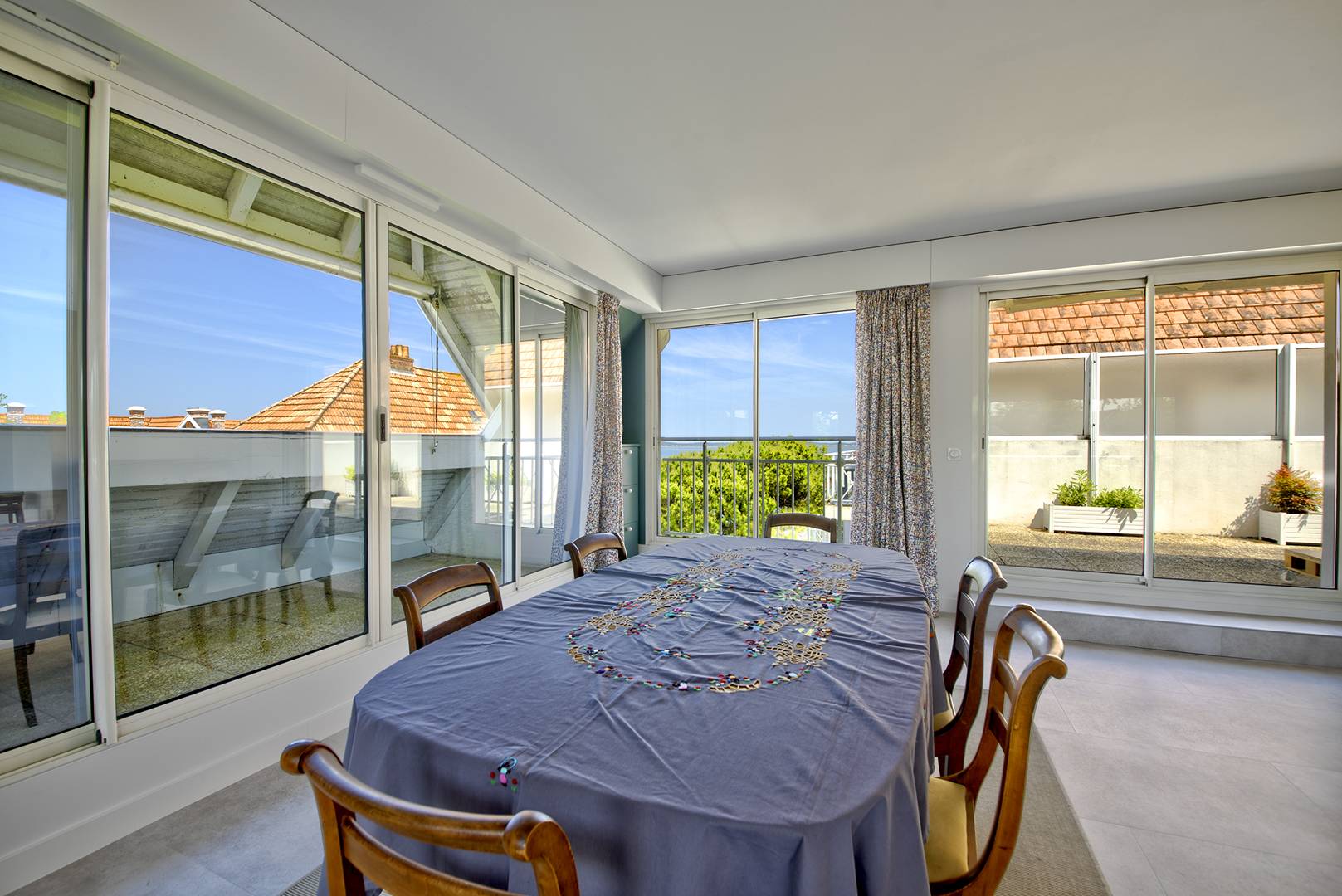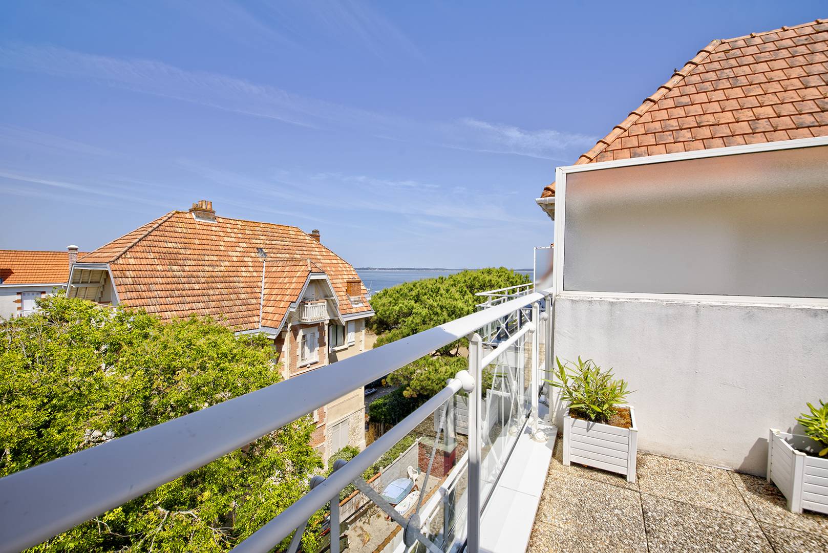 Cette résidence en première ligne offre un accès direct et privé aux plages de Pereire, avec vue sur le bassin. Situé au 4ème et dernier étage, cet appartement de standing bénéficie d'un ascenseur et de deux places de parking. Il propose 4 chambres (F5), traversant, avec balcons et terrasse.