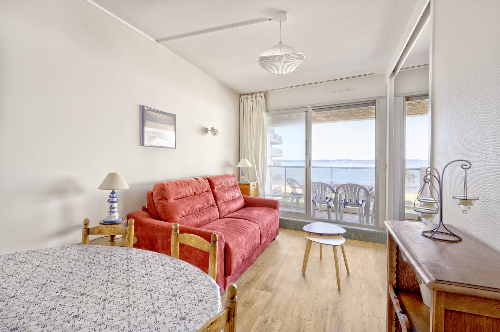 Au 3ème étage d’une résidence sécurisée avec ascenseur et gardien, en 1ère ligne avec un accès direct et privé à la plage au pied de l’immeuble, appartement T2 de 5 couchages offrant tout le confort nécessaire pour un séjour agréable. Il dispose notamment d’un balcon avec une vue imprenable sur le bassin et d’une place de parking en sous-sol.