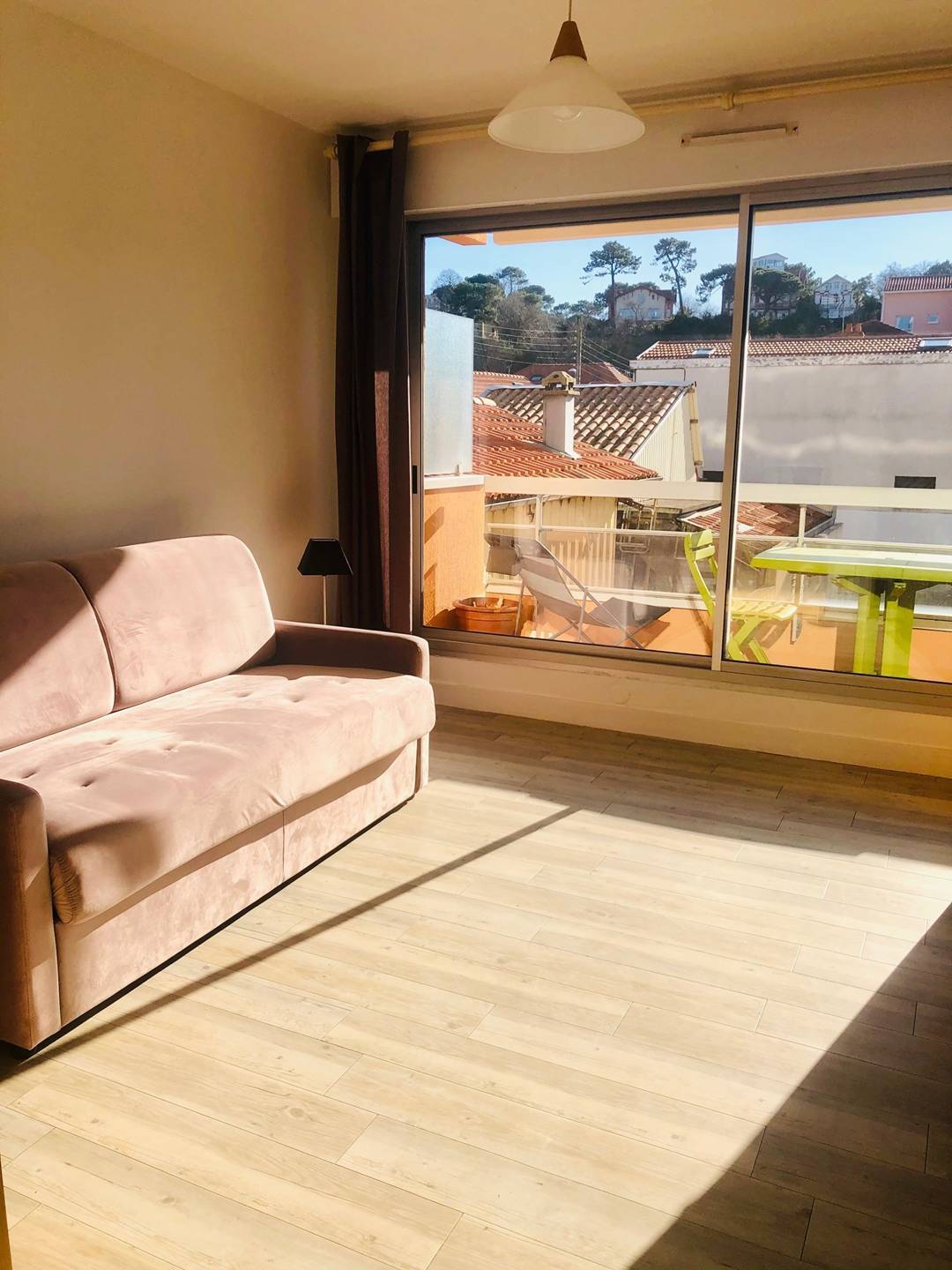Ce studio chaleureux, conçu pour accueillir 2 personnes, propose un espace intime de moins de 20 m², agrémenté d'un balcon orienté plein Sud. Dès votre arrivée, une cuisine équipée avec un petit réfrigérateur, 2 plaques vitrocéramiques, un mini-four et un micro-ondes vous attend. La salle de bains, avec WC et lave-linge, est fonctionnelle. La pièce principale, lumineuse, est meublée d'un canapé-lit en 140, d'un coin repas, d'une télévision et d'un placard/penderie. Elle s'ouvre sur un balcon ensoleillé d'environ 4,20 m², agrémenté de mobilier. Le stationnement est disponible dans la rue (payant). Cet appartement, idéalement situé et facile d'entretien avec son parquet et carrelage, est en bon état. Veuillez noter que les animaux ne sont pas admis. Le linge blanc n’est pas fourni mais peut être loué auprès de notre partenaire LocLinge (code promo : vacances33). Une assurance annulation (adhésion facultative) ainsi que le service de ménage de fin de séjour sont inclus.