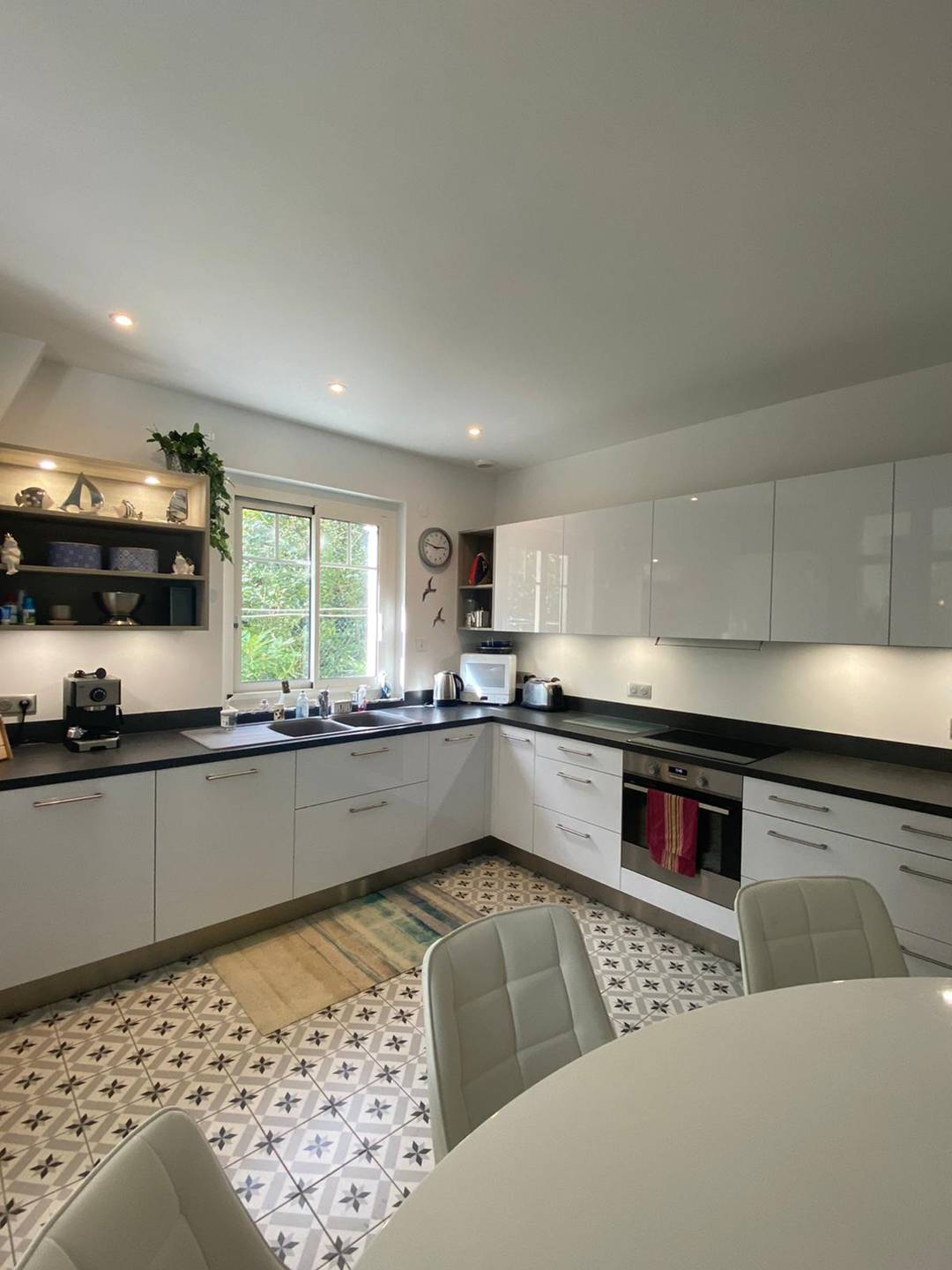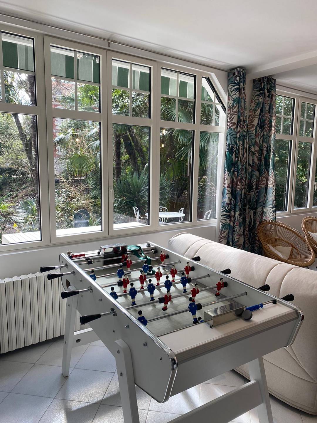 L'entrée mène à un WC séparé avec lave-mains, suivi d'un palier (accessible par quelques marches) desservant un deuxième WC indépendant et une salle d'eau. L'appartement comprend deux chambres orientées à l'ouest, chacune équipée d'un lit double en 160, d'un placard/penderie, et d'une deuxième salle d'eau. Il comporte également une buanderie avec lave-linge, une cuisine séparée et entièrement équipée (comprenant réfrigérateur avec congélateur, four traditionnel, micro-ondes, plaques à induction, hotte, lave-vaisselle), avec possibilité de prendre les repas sur place. Le grand séjour (air conditionné), très lumineux et exposé au sud et à l'est, est aménagé avec des canapés, une télévision, un lecteur DVD et un baby-foot, offrant une vue sur la terrasse et le jardin. Une très grande salle à manger, ornée de superbes vitraux, comprend un lit gigogne (2 couchages 80X190). La belle et vaste terrasse exposée au sud, sans vis-à-vis, est meublée et offre une vue sur la verdure. Le stationnement est disponible dans la rue gratuitement. L'ensemble présente un style contemporain, facile à entretenir et en excellent état. Internet/WIFI est disponible. Le quartier est calme, avec des commerces (boucherie, bar/tabac/presse, supermarché Carrefour, pharmacie) à seulement 300 mètres. Les animaux ne sont pas admis et il est demandé aux occupants de ne pas fumer. Le linge blanc n'est pas fourni mais peut être loué via notre partenaire LocLinge (code promo : vacances33). Une assurance annulation est incluse (adhésion facultative) et le ménage de départ est inclus, suite à un entretien normal et régulier pendant le séjour. Meublé de tourisme classé 3 *** par Gironde Tourisme en mai 2025.
