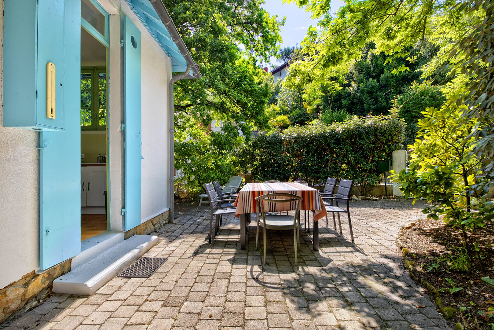 Une terrasse entourée de verdure, accessible depuis la cuisine, ainsi qu'un vaste jardin arboré, complètent cette villa familiale très bien équipée. L'accès Internet / WIFI est disponible. Fumer à l'intérieur est interdit. La villa est située dans un quartier calme, à proximité des plages (700 mètres), du centre-ville (950 mètres) et d'une épicerie (550 mètres), avec un stationnement aisé dans la rue.