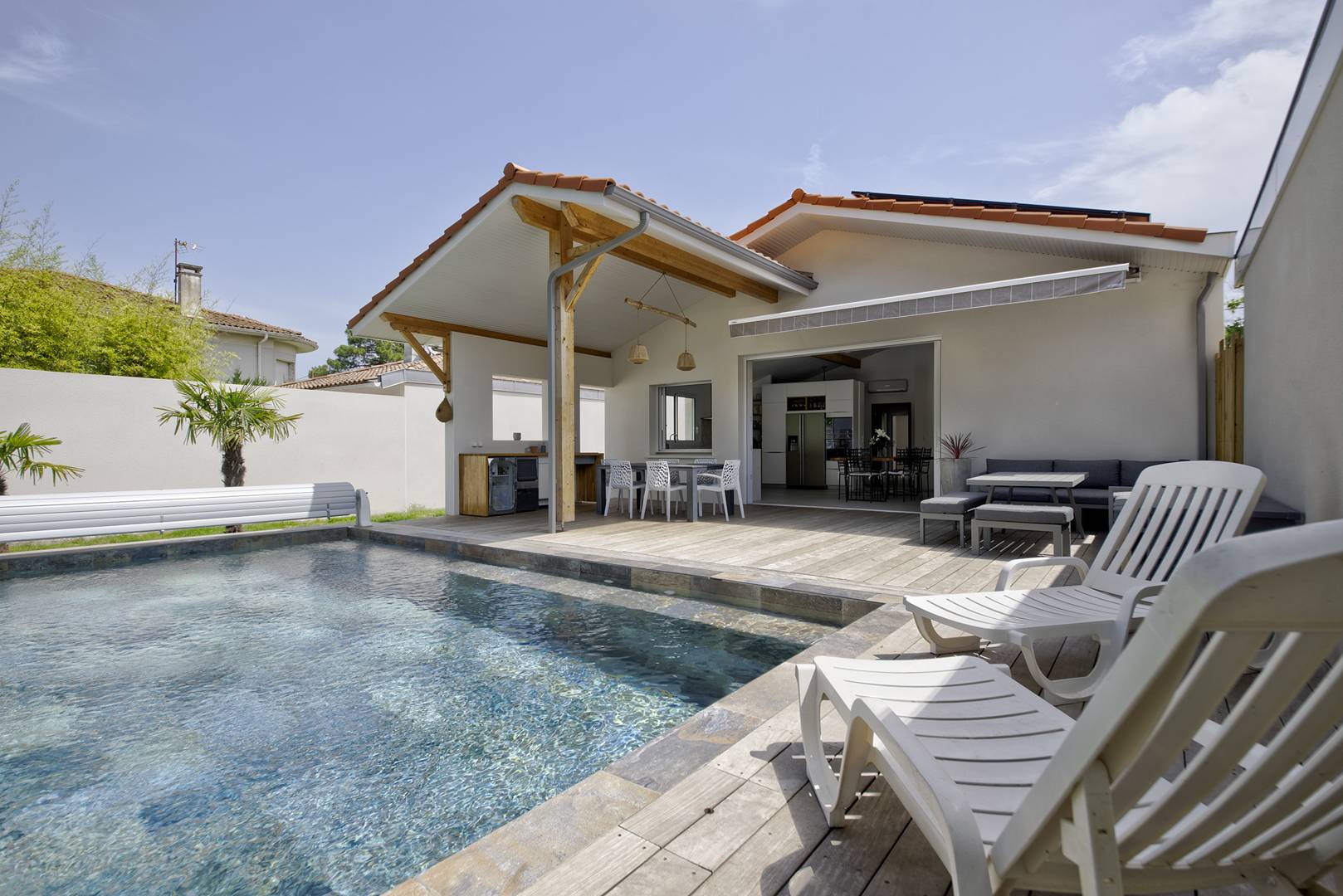 BASSIN D’ARCACHON / MAGNIFIQUE VILLA DE PLAIN-PIED AVEC PISCINE, PROCHE DE LA PLAGE ET DE LA GARE DE LA HUME