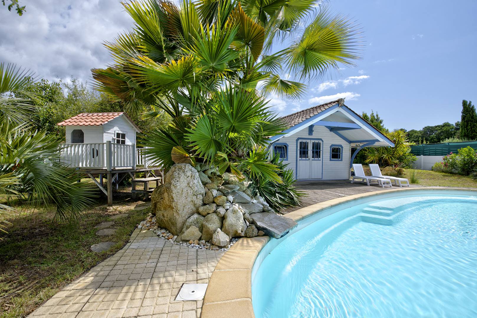 À l'extérieur, vous profiterez d'un jardin bien entretenu, d'une terrasse avec mobilier, d'une belle piscine chauffée au sel (10 x 4) avec "alarme immergée", et d'un terrain de pétanque. Pour les enfants, des équipements de jeux tels qu'un trampoline, une balançoire et un toboggan sont disponibles.