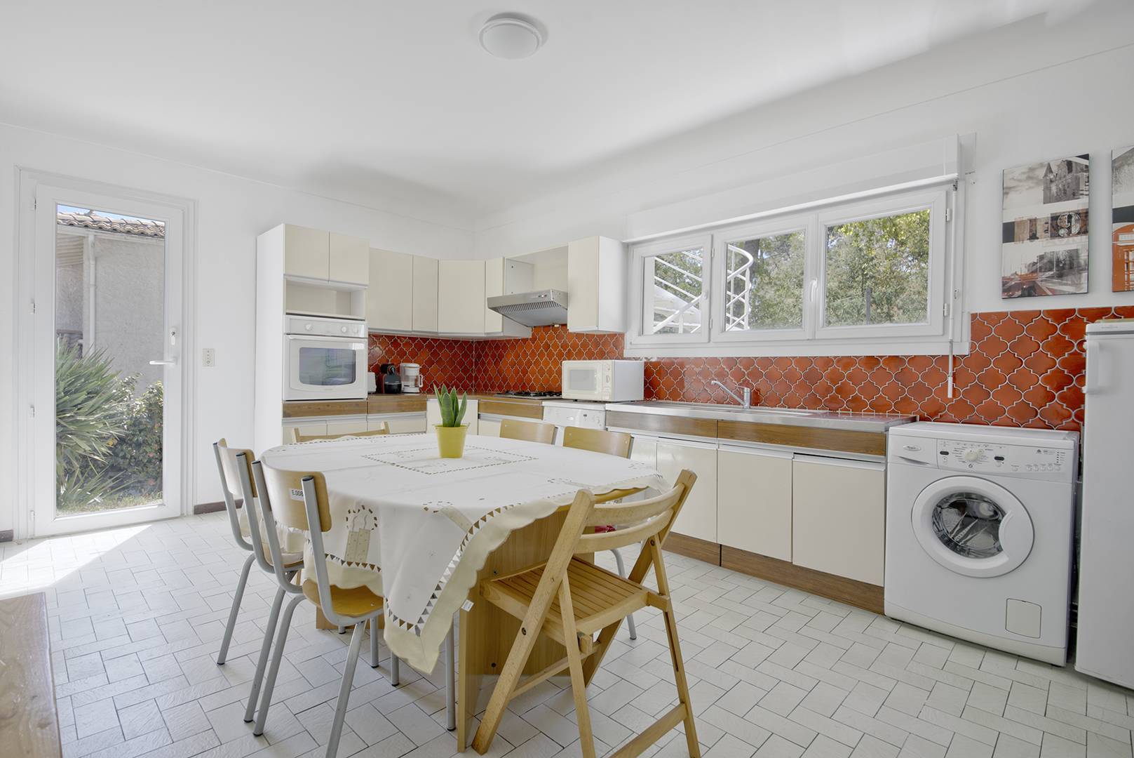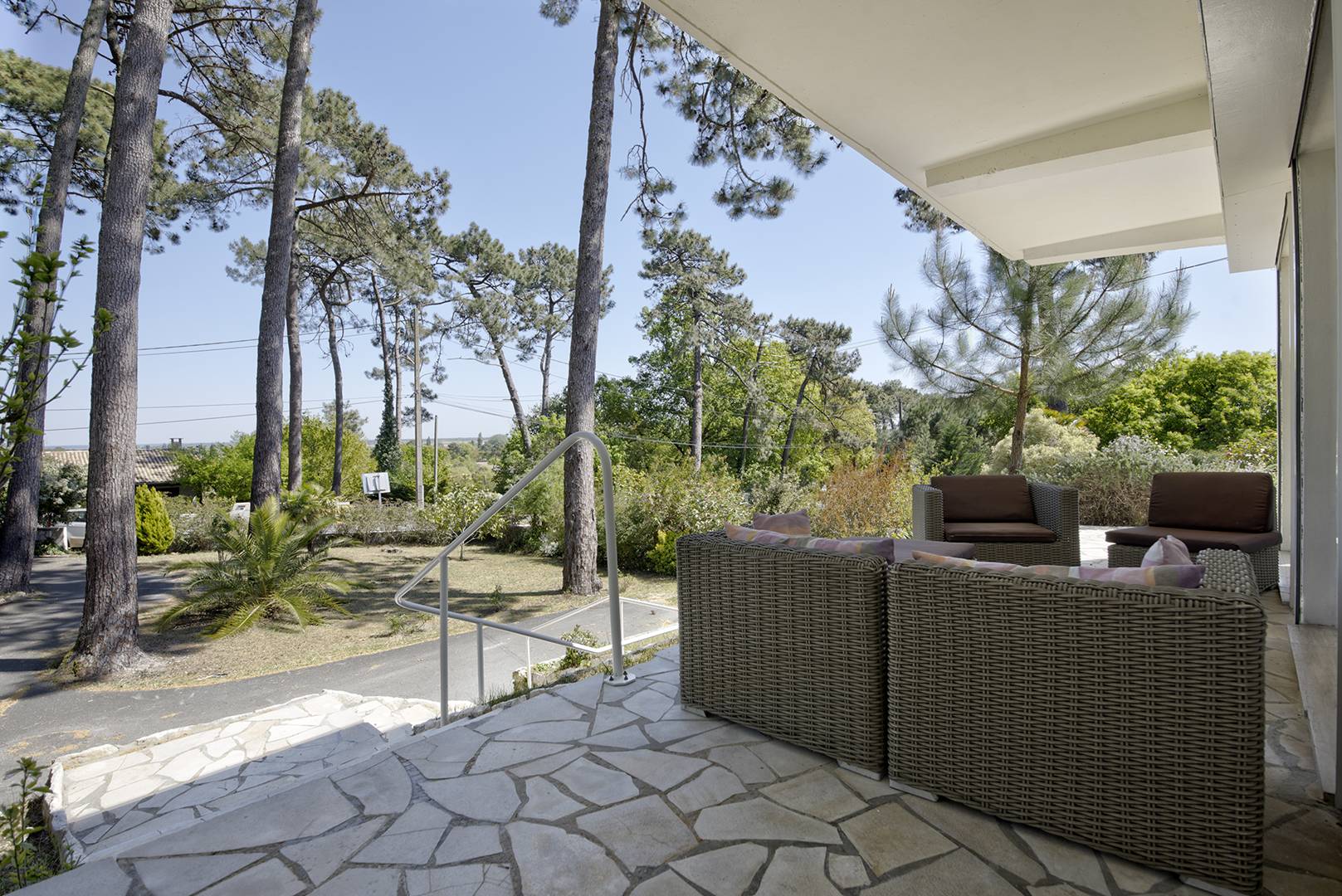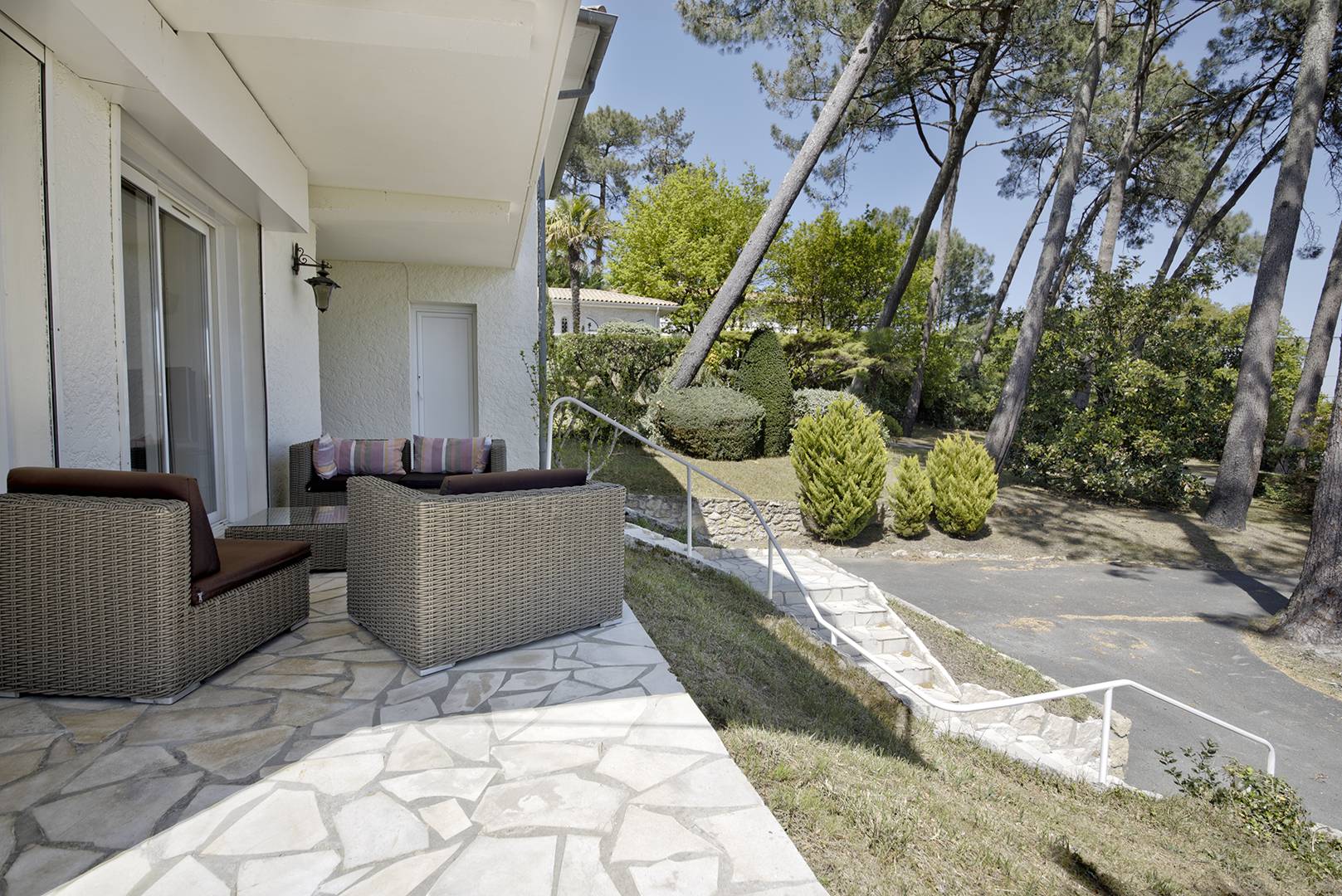 Jardin et terrasse avec mobilier. Possibilité de stationner 2/3 véhicules. Pièces spacieuses, maison facile d’entretien et jardin très agréable. Une dizaine de marches pour accéder à la villa. Plages du Moulleau à quelques mn en voitures et commerces à 2 km.