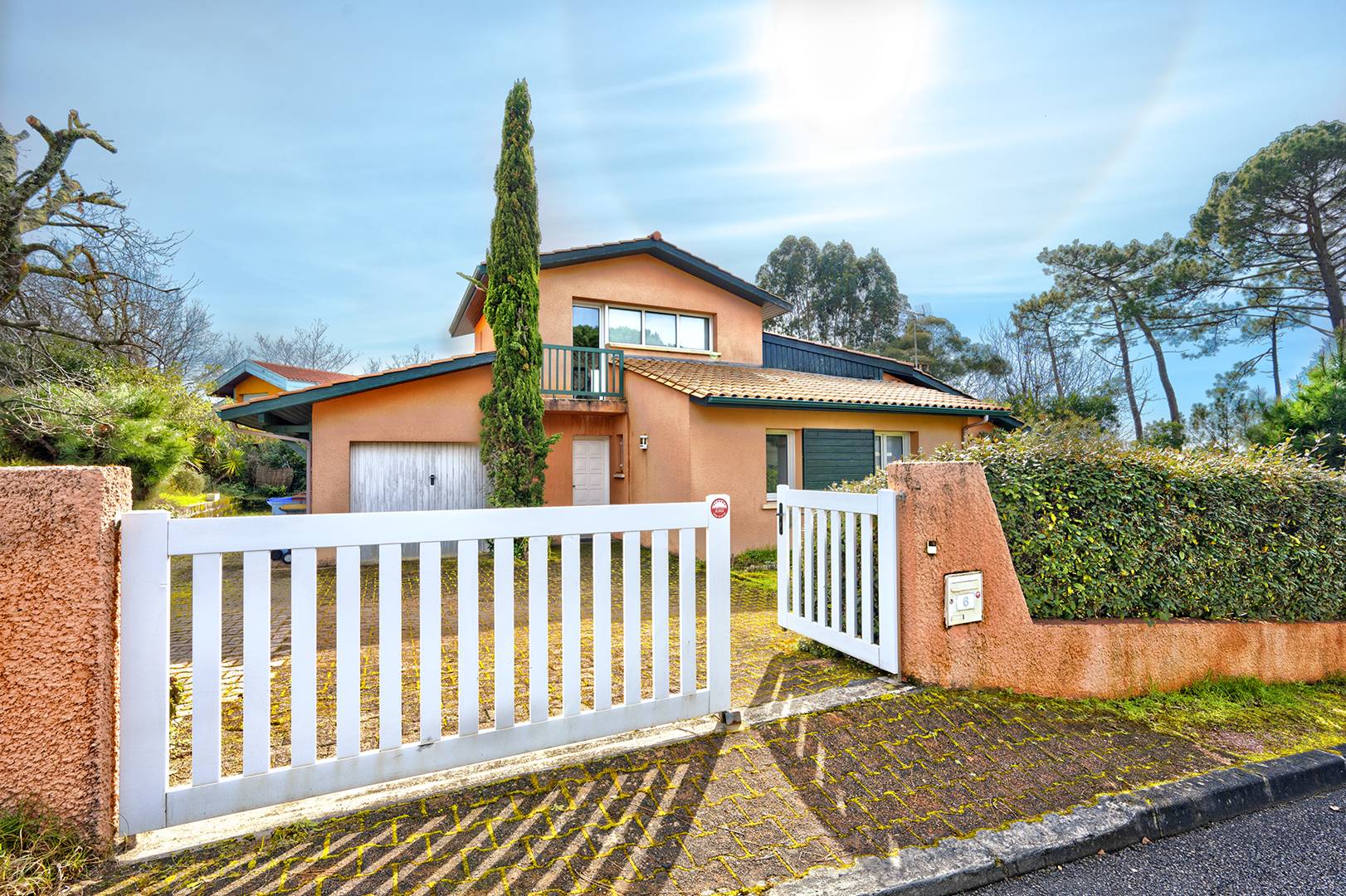 Au rez-de-chaussée, une entrée dessert une première chambre orientée à l’Est, équipée d’un lit double et d’un grand placard, avec un accès direct à une terrasse ombragée. La cuisine, séparée et entièrement équipée, s’ouvre sur une terrasse plein Sud, parfaite pour les repas en plein air. Un spacieux séjour, lumineux et traversant, bénéficie d’une triple exposition et donne accès aux terrasses Sud et Ouest. Une seconde chambre, côté Nord, ainsi qu’une salle de bain et des toilettes séparées complètent ce niveau. Un cellier avec lave-linge et sèche-linge assure un confort optimal. À l’étage, la mezzanine surplombant le séjour offre un espace détente avec canapé-lit et télévision. On y trouve également une salle d’eau avec WC, ainsi qu’une troisième chambre lumineuse, exposée Sud et Est, dotée de deux lits simples et d’un grand placard. À l’extérieur, trois terrasses bien exposées permettent de profiter du soleil à toute heure de la journée, tandis que le jardin paysager, orné notamment d’un bel eucalyptus, invite au repos. Le garage est réservé au rangement et le stationnement peut se faire aisément devant la villa ou dans la rue. Parfaitement équipée, facile à vivre et très lumineuse, cette maison bénéficie d’un emplacement privilégié : la plage du Pyla est accessible à pied en quelques minutes, une petite épicerie se trouve à proximité, le quartier du Moulleau à dix minutes en voiture, et la célèbre dune du Pilat à seulement cinq minutes. Les animaux sont acceptés sous réserve d’un accord préalable. Le linge de maison n’est pas fourni mais peut être loué via notre partenaire LocLinge (code promo : vacances33). Une assurance annulation est proposée en option et le ménage de fin de séjour est inclus, à condition que le logement soit entretenu normalement pendant la durée de la location.